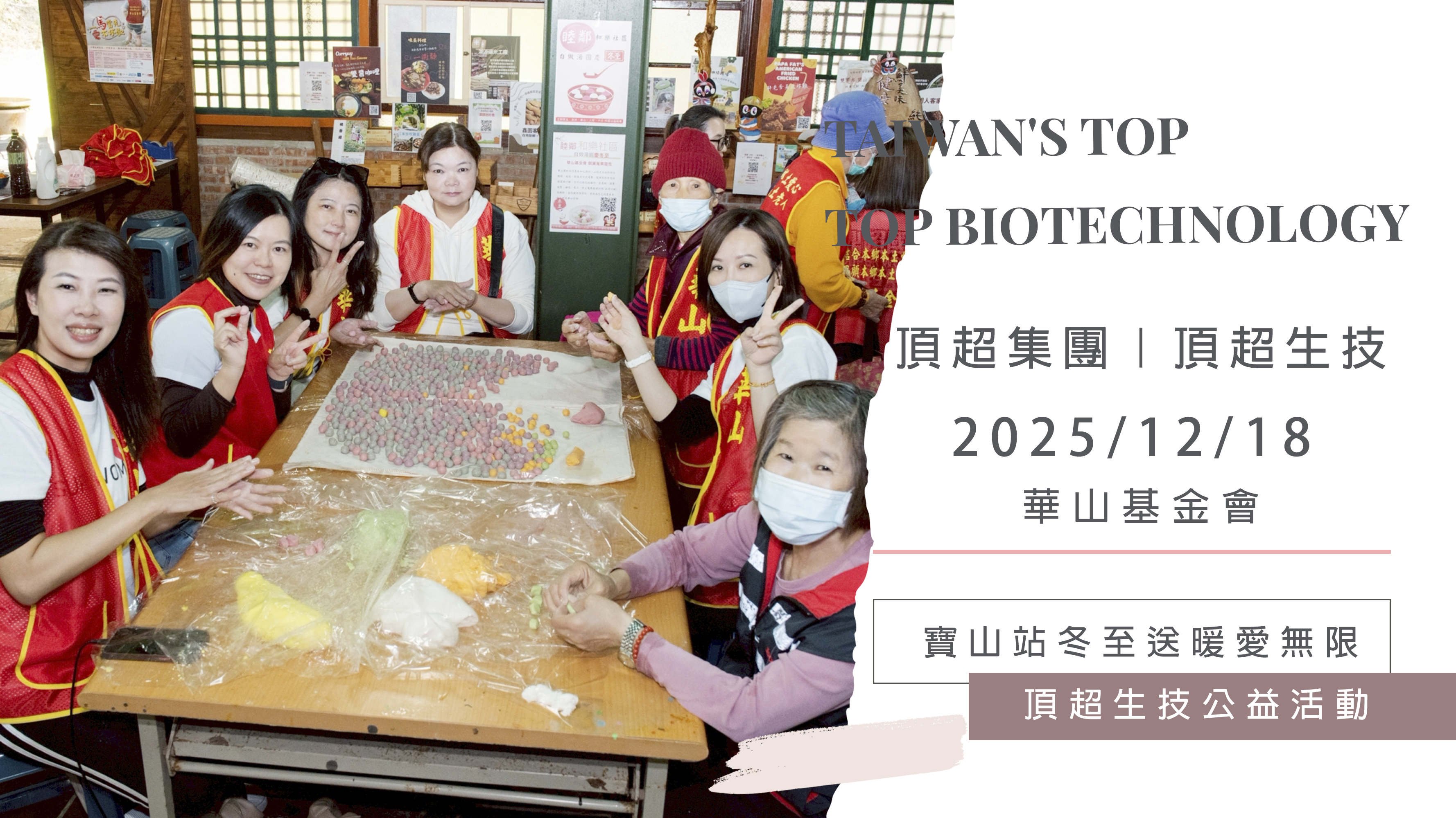 2025年12月18日,頂超集團|頂超生技 在 超老闆孔文 的帶領下,攜手 華山基金會寶山愛心天使站 舉辦 冬至送暖公益活動,陪伴寶山區的長輩一起過冬至,也把歲末最真實的溫暖送進山區。
